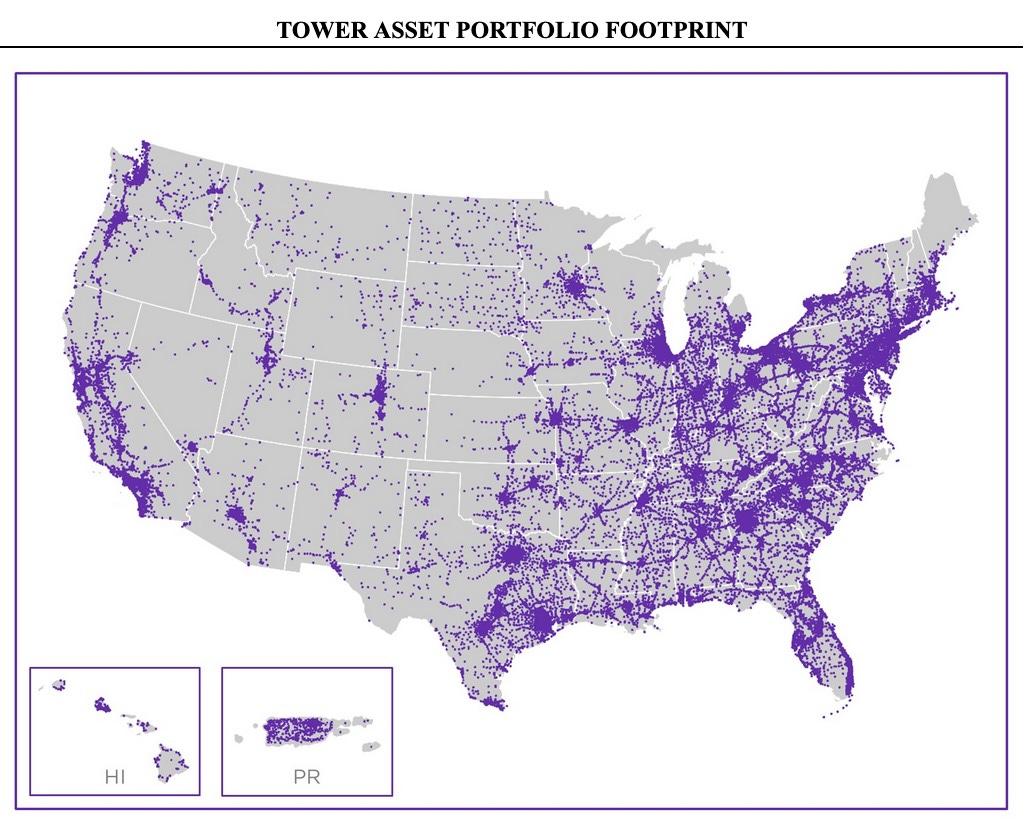 Tower REITs are atypical REITs. Their towers span the US, as you can see here: