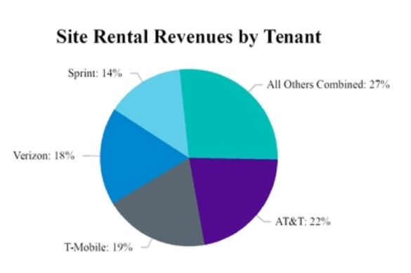 Having nearly all your revenues with four tenants carries high risk. We saw this play out with the merger of T-Mobile and Sprint, which led to large numbers of lease cancellations.